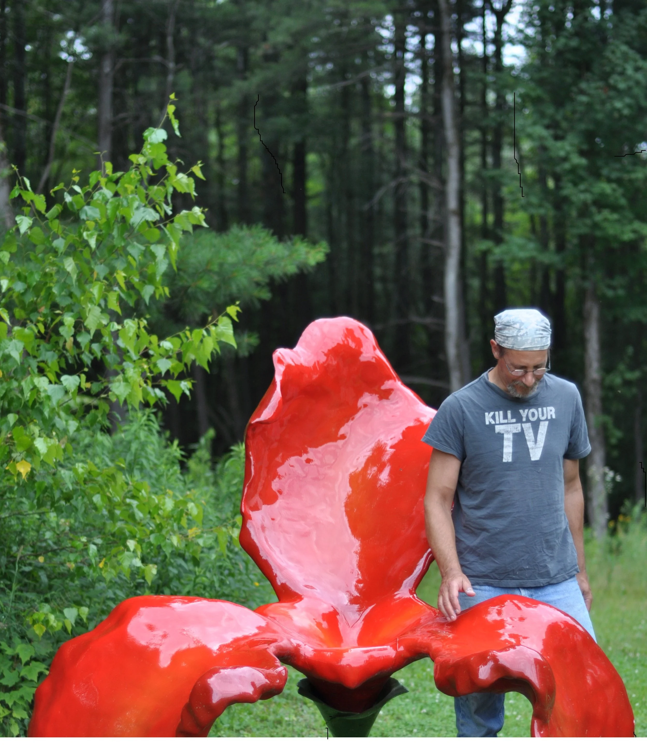 Michael’s current work is titled The Infatuation Series; larger than life painted resin flowers over a welded inner structure capable of holding up to 1,000 lbs.